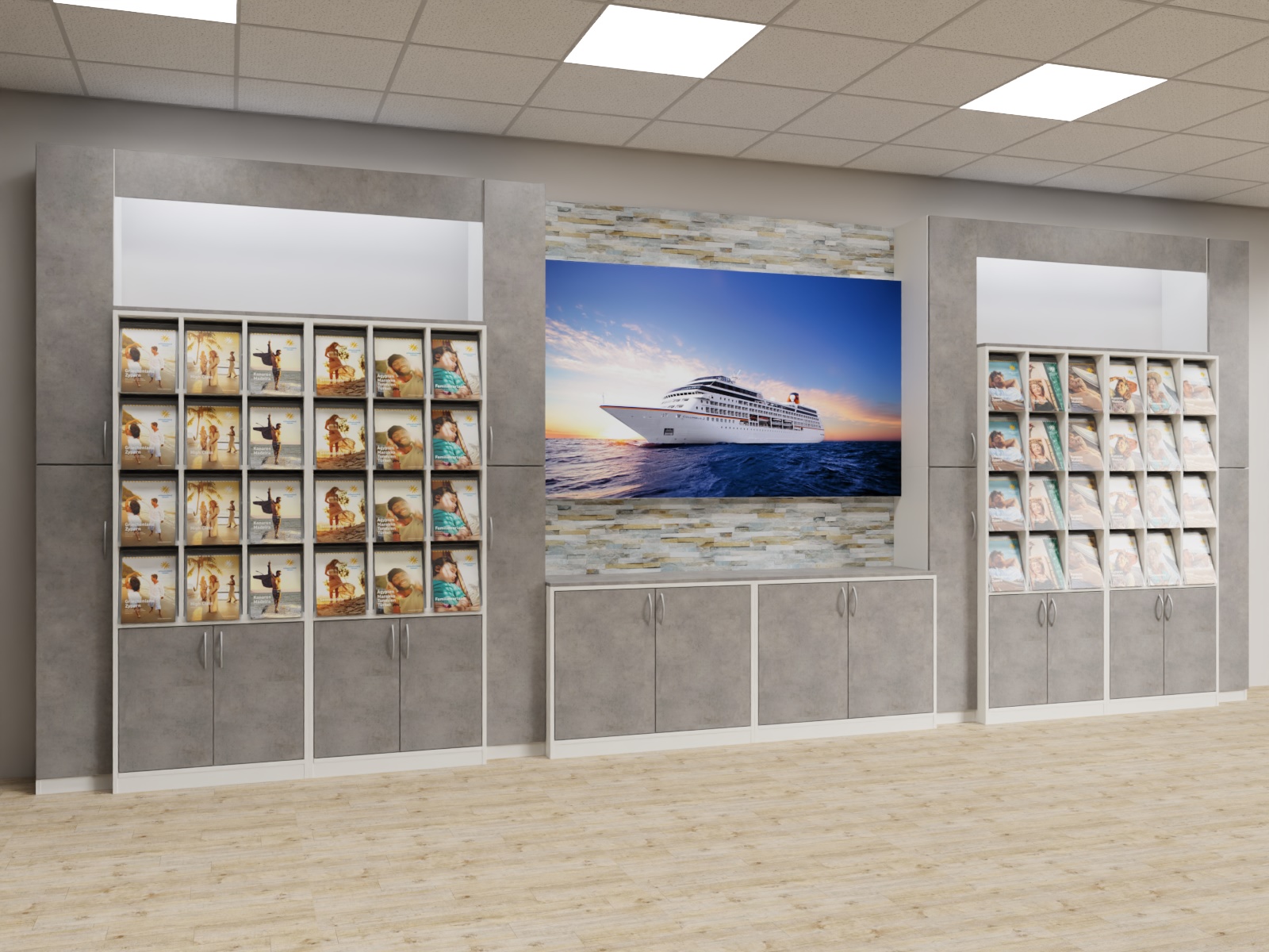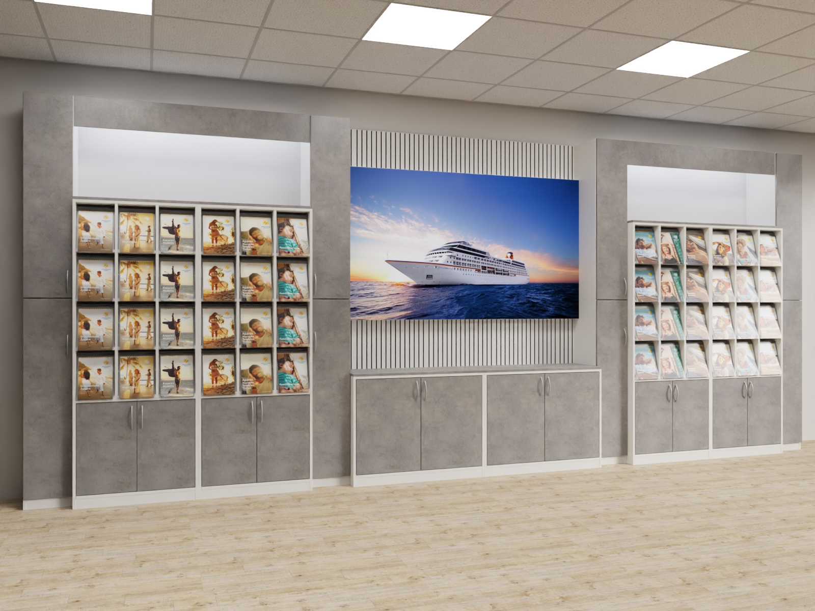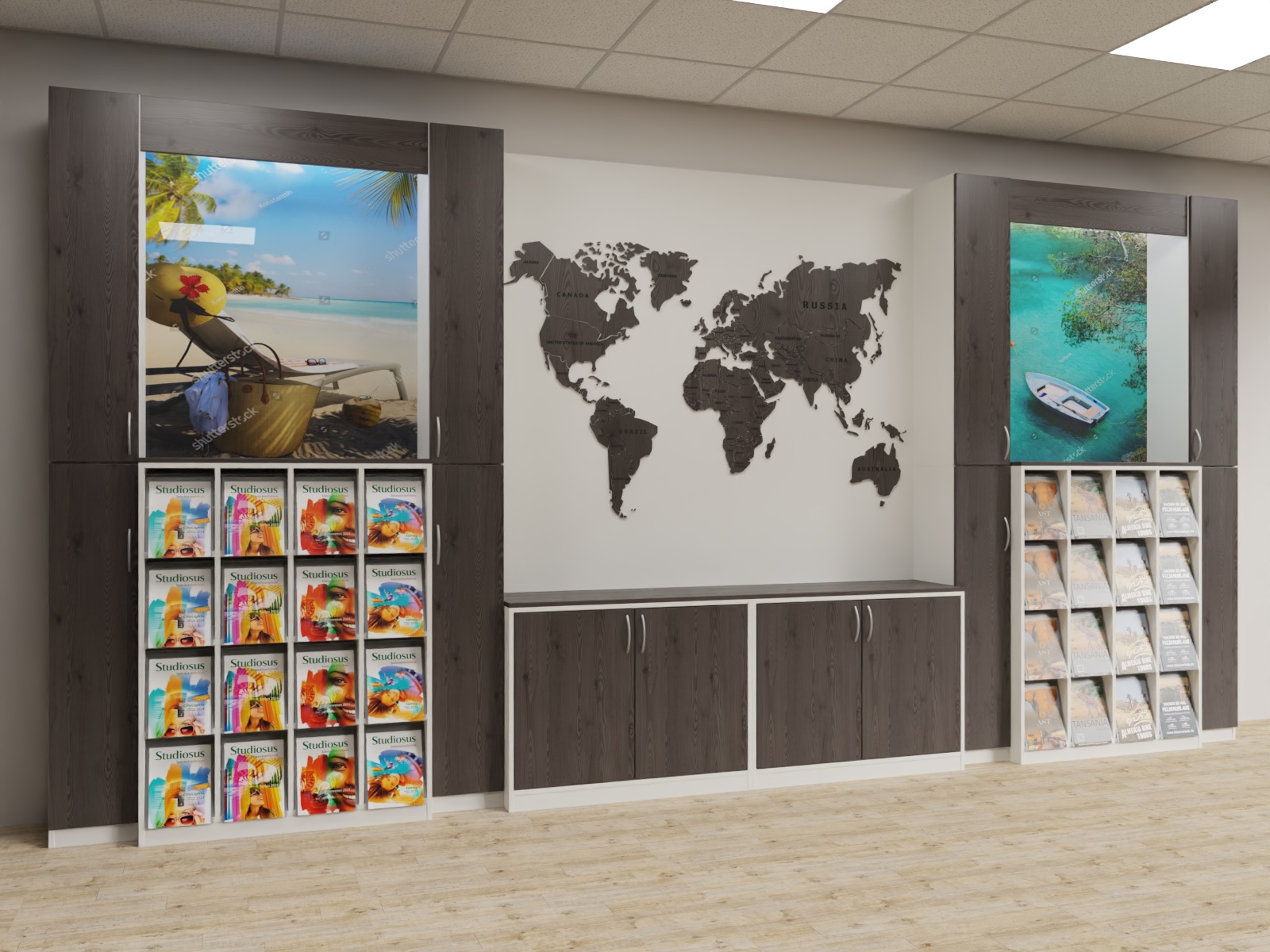 Kombination mit 3d Weltkarte aus Holz auf AkustikpaneeleKorpus: W980 Weiß Front: W980 Weiß