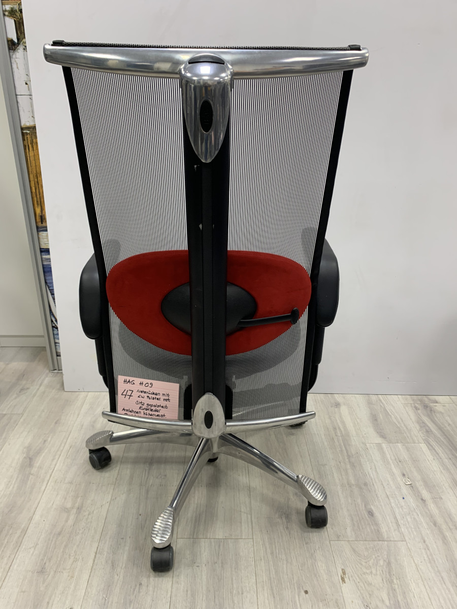 Netzrücken mit Lendenwirbelpolster in Rot Sitz gepolstert in Kunstleder schwarz