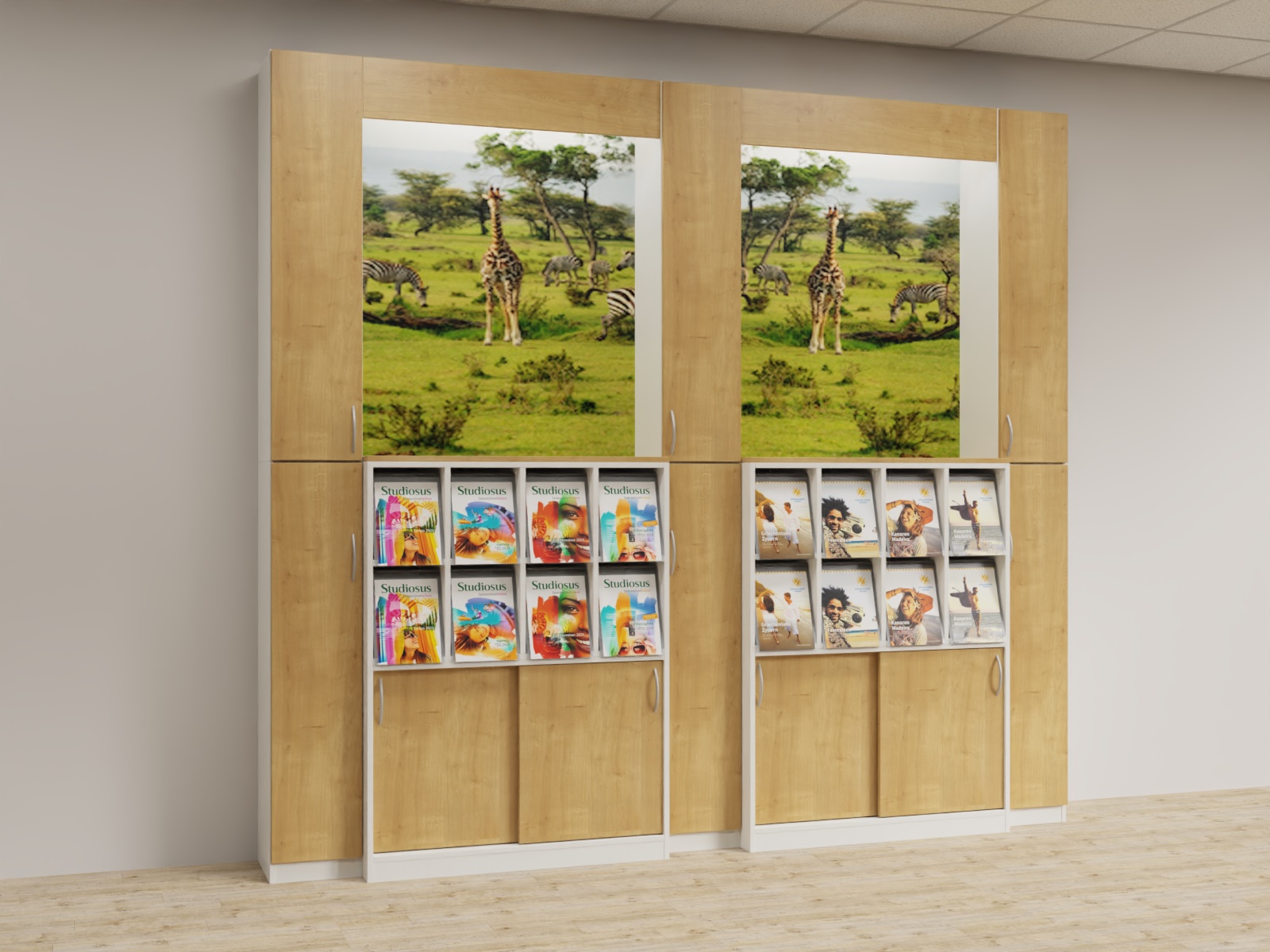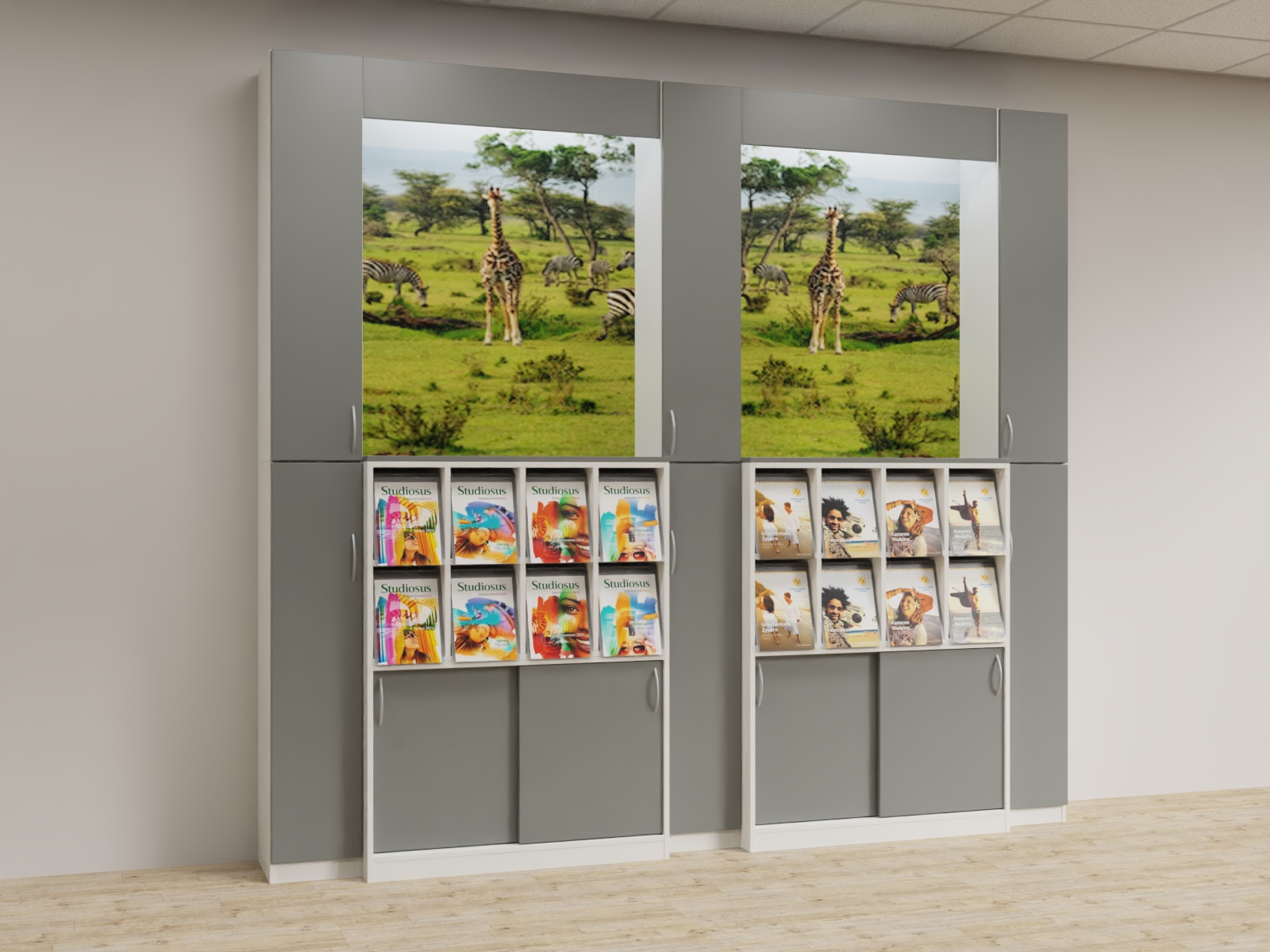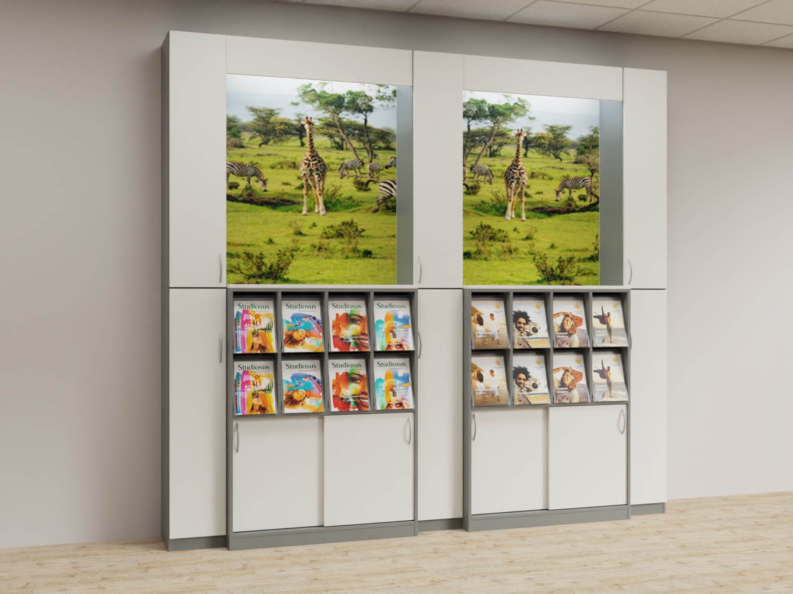 Variante 04 3x Funktionsäule,2x K4x2s Prospektschrank, Bildrückwände, Lichtwinkel