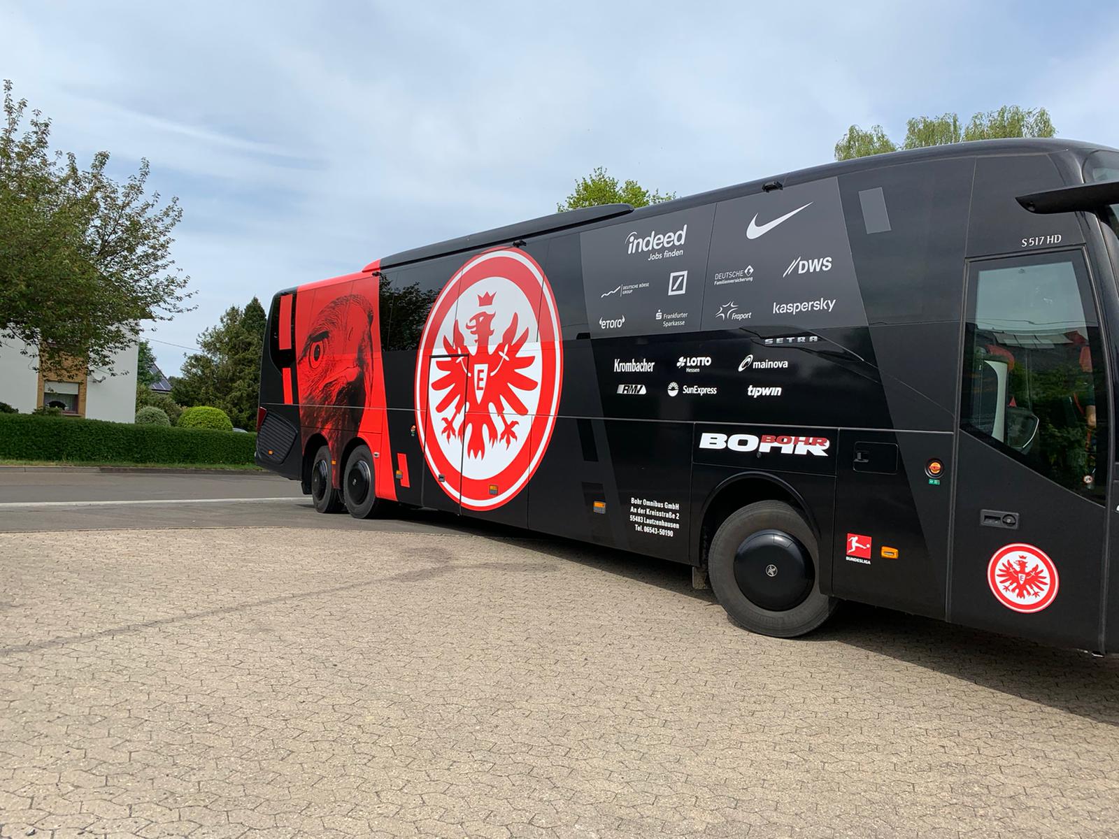 Die Herzen der Fußballfans in unserer Region schlagen höher. Die Eintracht bei und zu Gast. Wir statten den Vereinsbus der Eintracht Frankfurt mit Virenschutz aus.