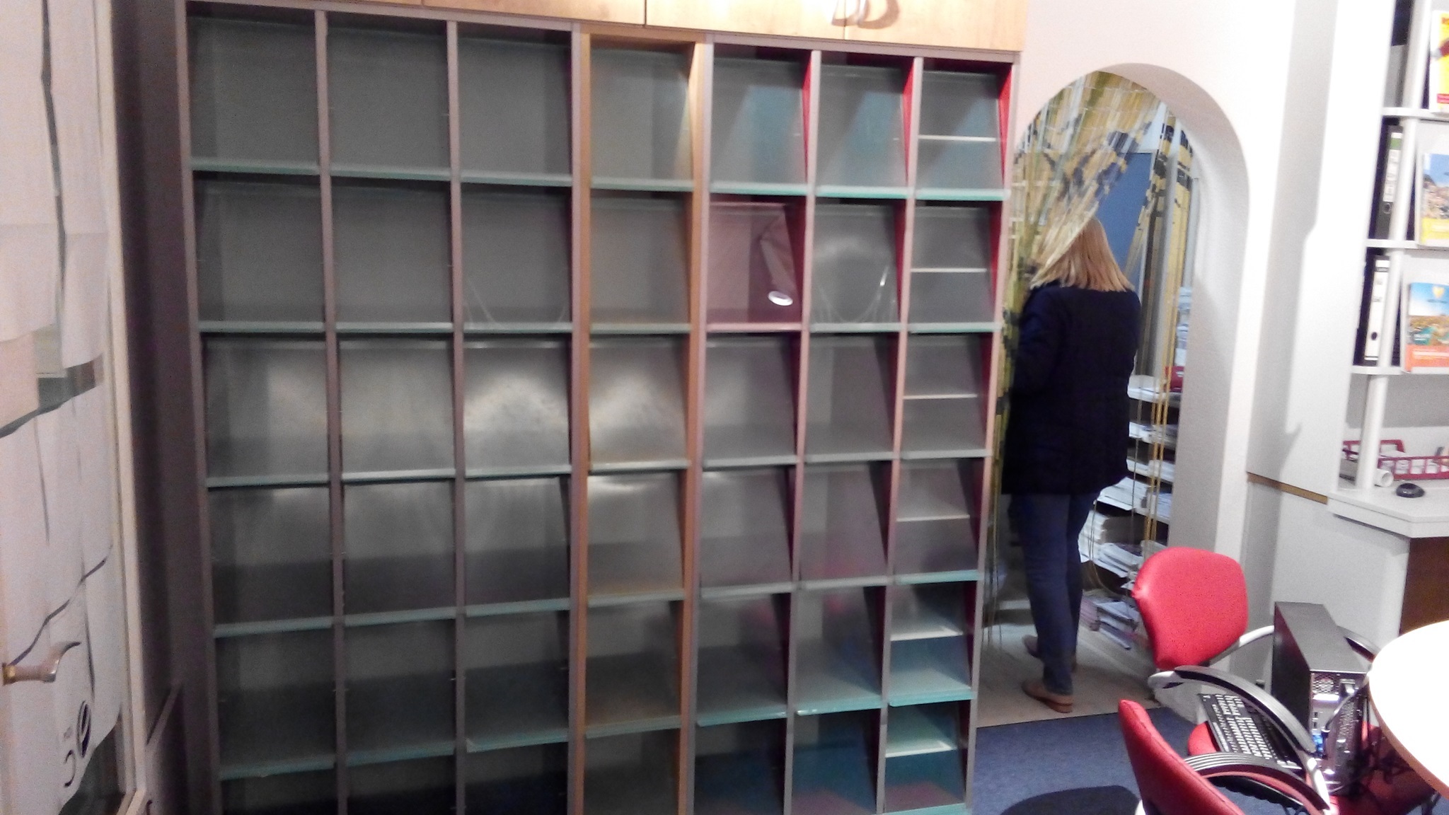 Kleines Reisebüro in Wangen Umbau Platzoptimierung auf kleinstem Raum Lieferung neue Schreibtischanlage, Umbau Erweiterung Prospektschrankanlage