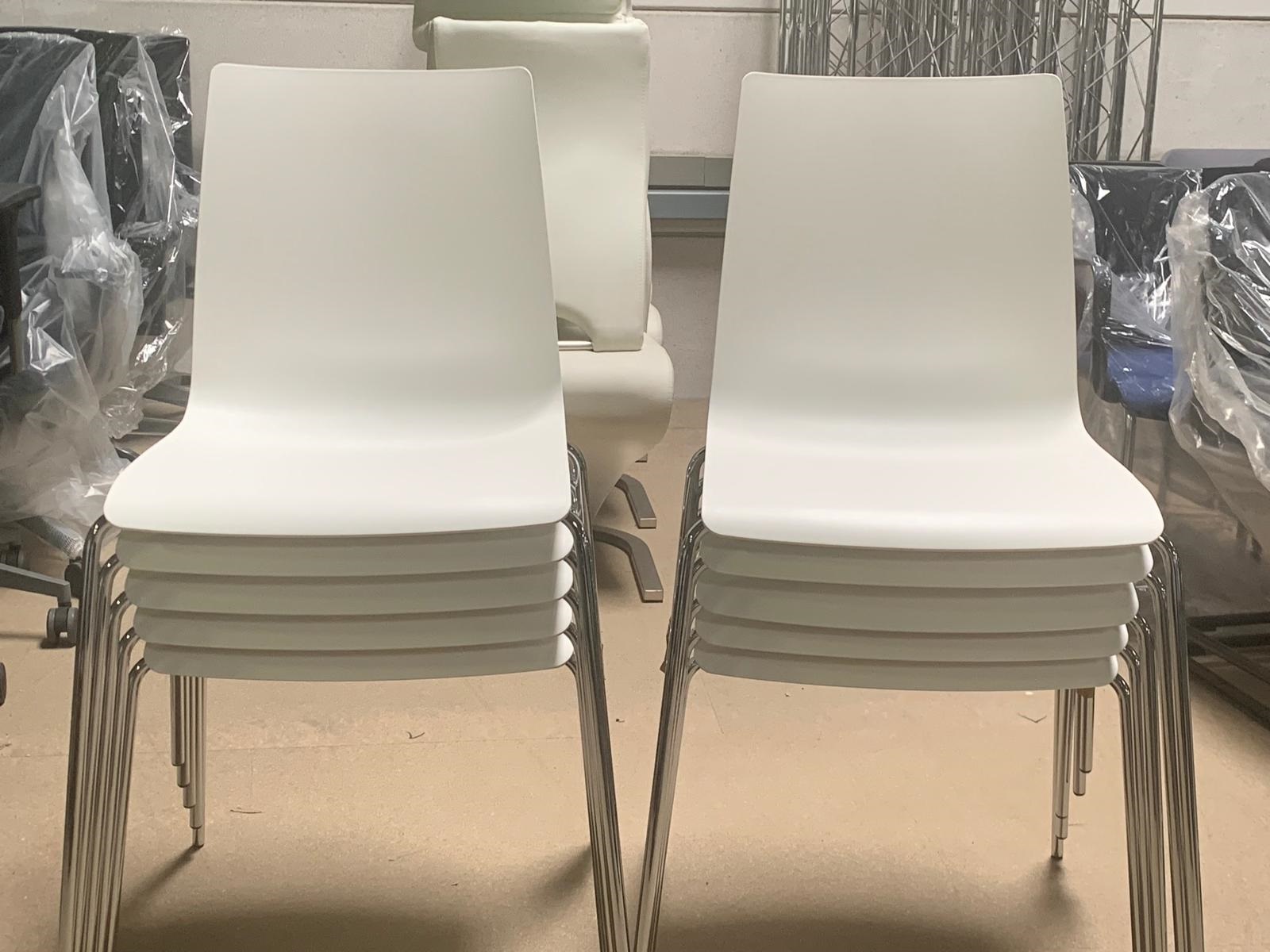 10 x Stapelstühle Weiß mit Kunststoff Schale.