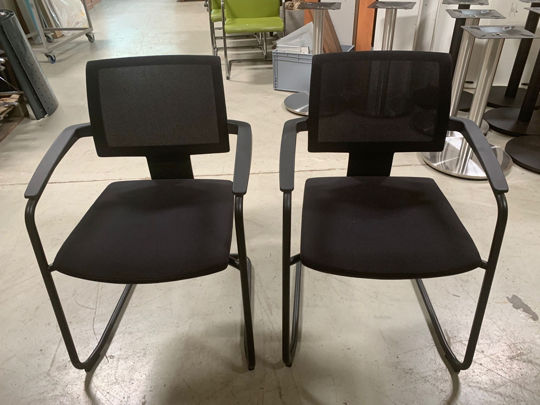 Besucher stuhl mit schwarzem Bezugsstoff und Netz rücken.