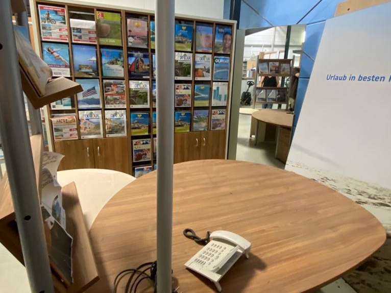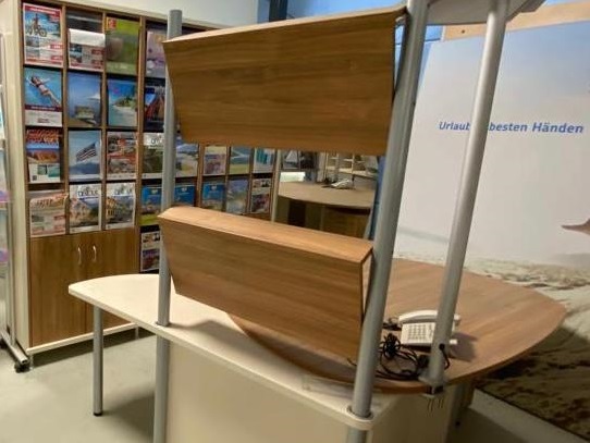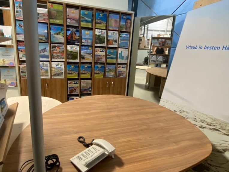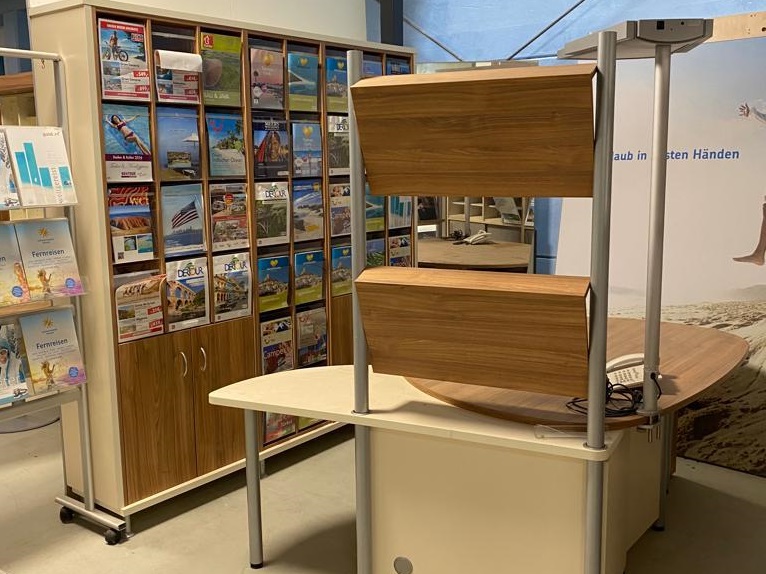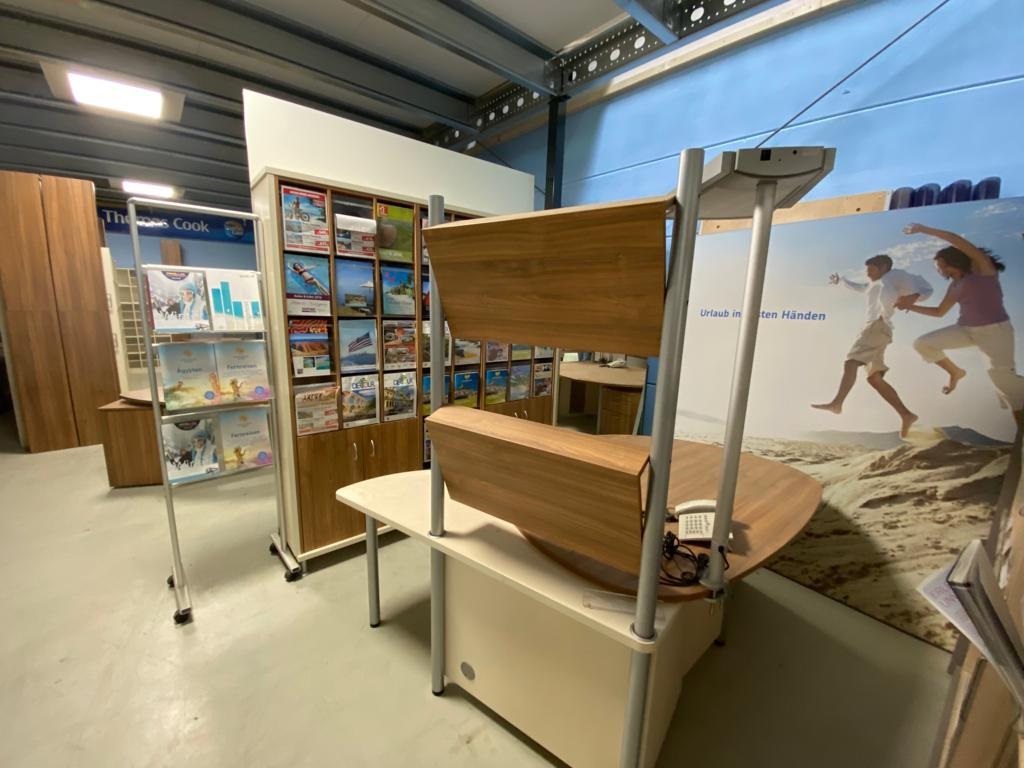 TUI Travelstar Orginal Arbeitsplatz Schreibtisch mit Katalogablage und 3 Prospekt Schränke Kermax/ TUI Travelstar. Netto 2499,-€ ab Lager Reckershausen