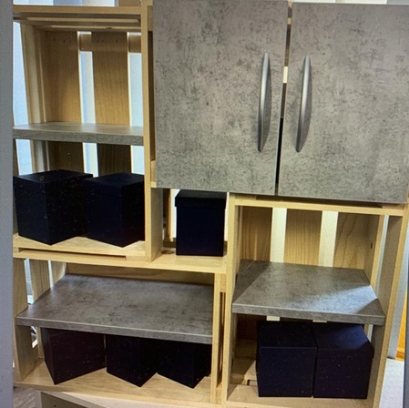 Weinkisten Wandregal . Verschiedene Tür/ Regaldekore möglich …..