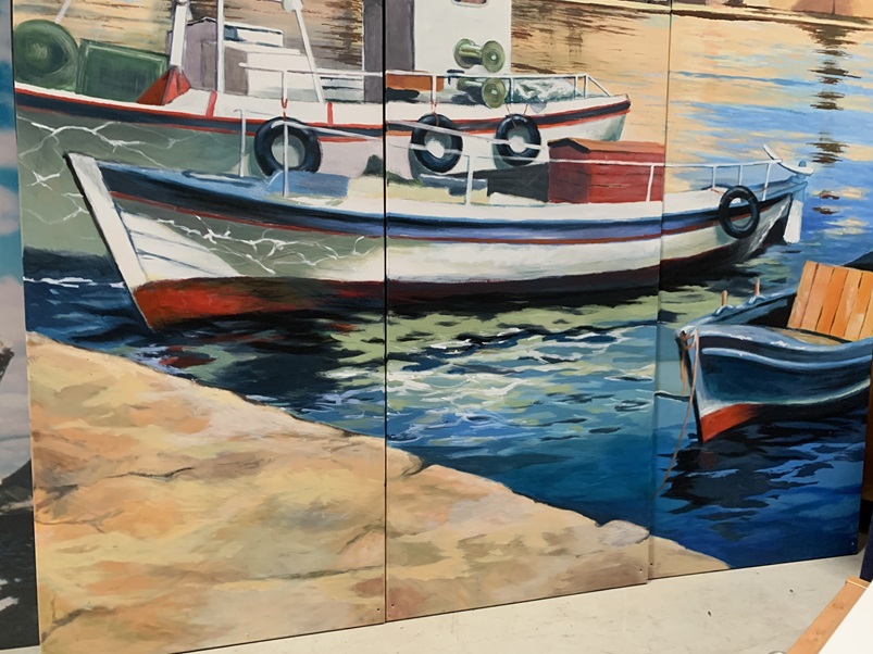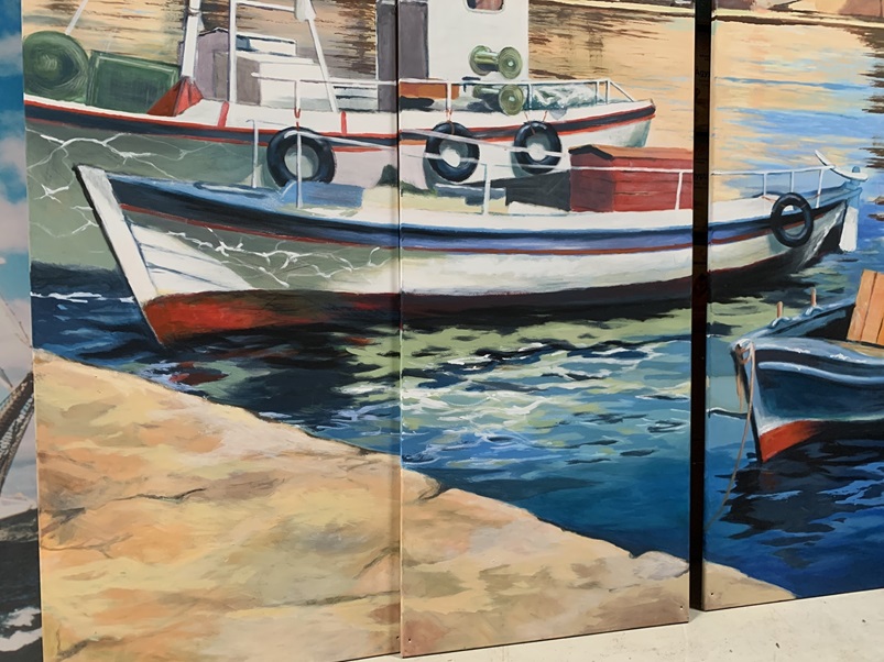 3 teiliges Acrylbild eines Bühnenmalers für Luthe Ladenbau auf Holzrahmen mit Leine bespannt .