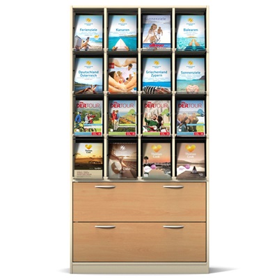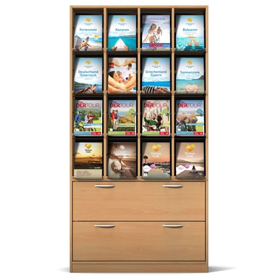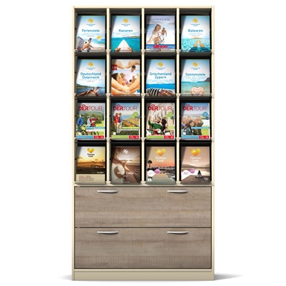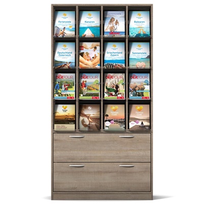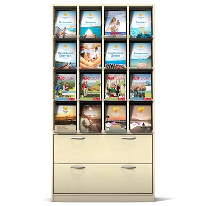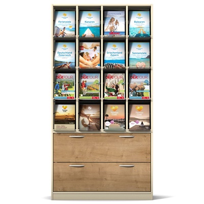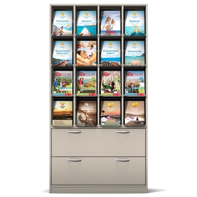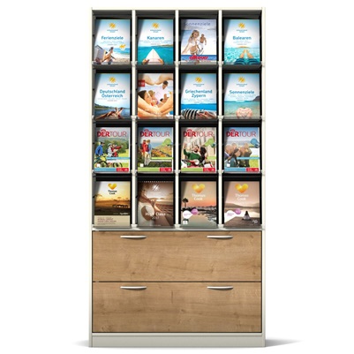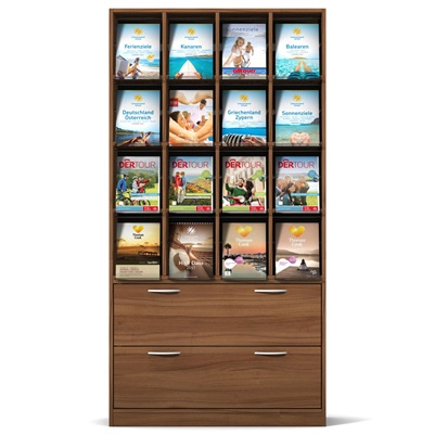 in Front wahlweise mit Katalogklappe zur Aufnahme eines ganzen Katalogs oder Zeitschrift