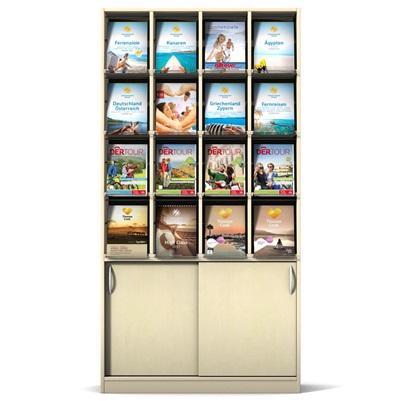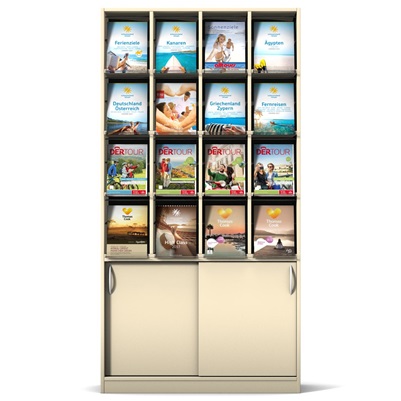 in Front wahlweise mit Katalogklappe zur Aufnahme eines ganzen Katalogs oder Zeitschrift