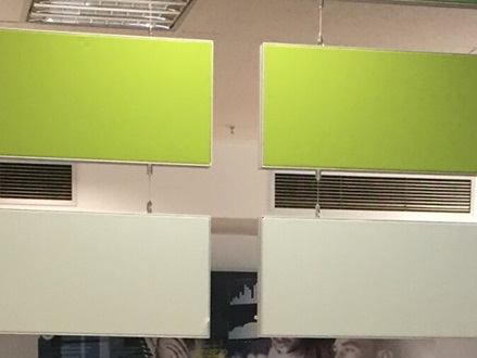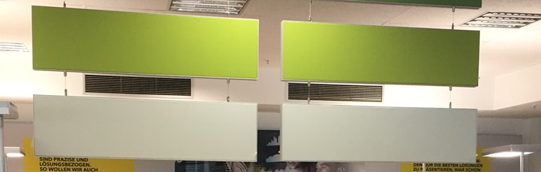 Sie wählen den optimalen Platz an der Decke und bringen die Abhängung an die Decke. Danach verbinden Sie die Elemente miteinander und hängen diese ein. So schnell und unkompliziert ist eine nachträgliche Verbauung mit akustischen Elementen möglich.