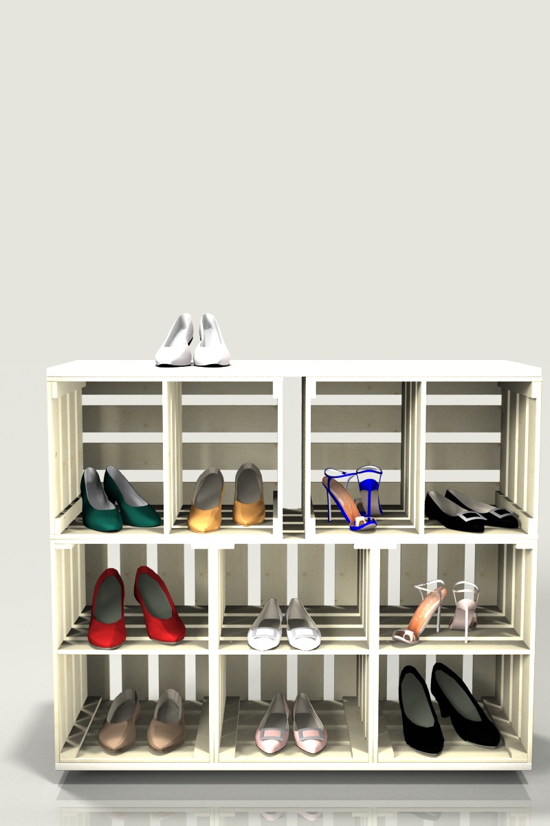 Schuhhotel - Schuhregal im Weinkisten look. Beliebig stapelbar, beliebig erweiterbar.