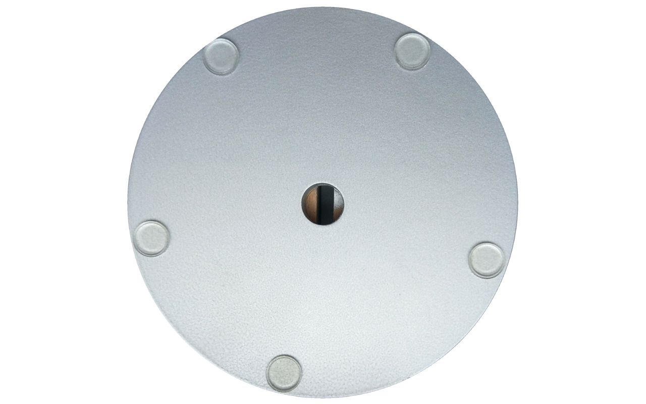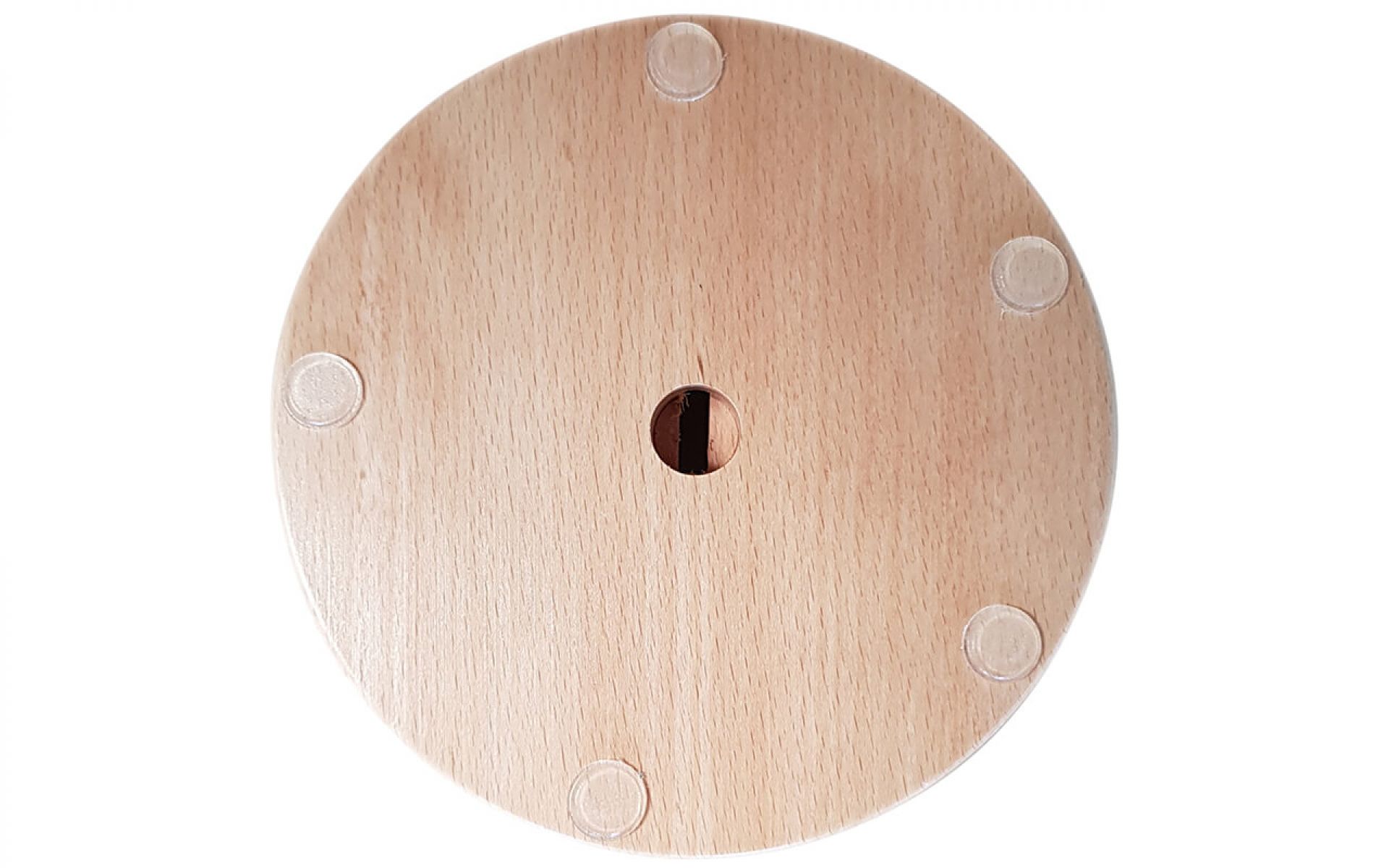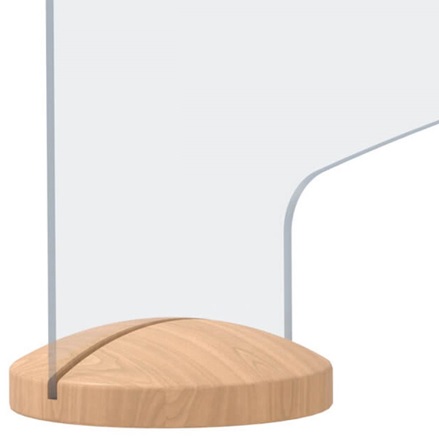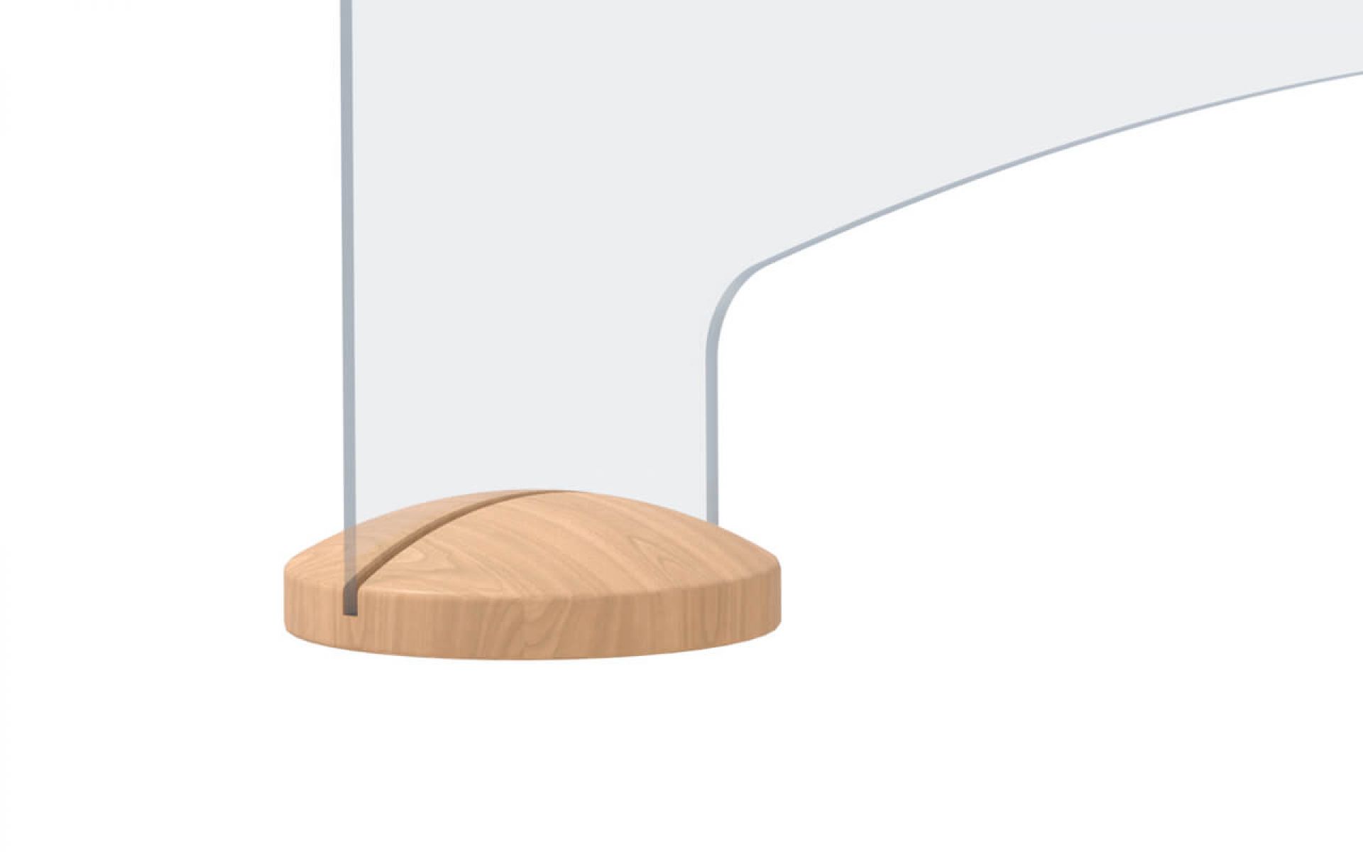 Acryltopper "Care", 500 | 600 mm Höhe, aus Acrylglas 5 mm, mit Durchreiche. Inkl. 2 Design-Holzfüße Buche natur lackiert, ø 140 x H 37 mm, mit Schlitz, 15 mm Bohrung und 5 aufgeklebten Gumminoppen an der Unterseite.