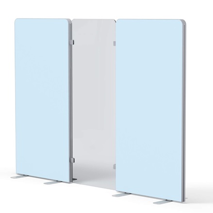 Das individuell gestaltbare, flexible Trennwandsystem "BASIC" schafft in viel frequentierten Räumen abgegrenzte Zonen und sorgt für den nötigen Abstand und Wohlfühlatmosphäre. Die Einsatzmöglichkeiten sind vielfältig – vom Büro über Praxis und Klinik bis zur Beratungs- oder Verkaufsflächen. Die Trennwände können mit Scharnieren ausgestattet werden und als flexible Paravents genutzt werden.
