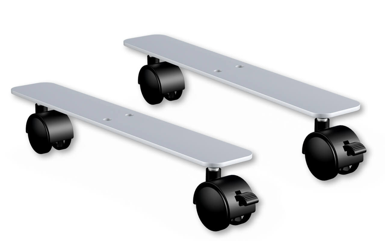 2 Standfüße mit 4 Rollen mit Feststeller ausgestattet