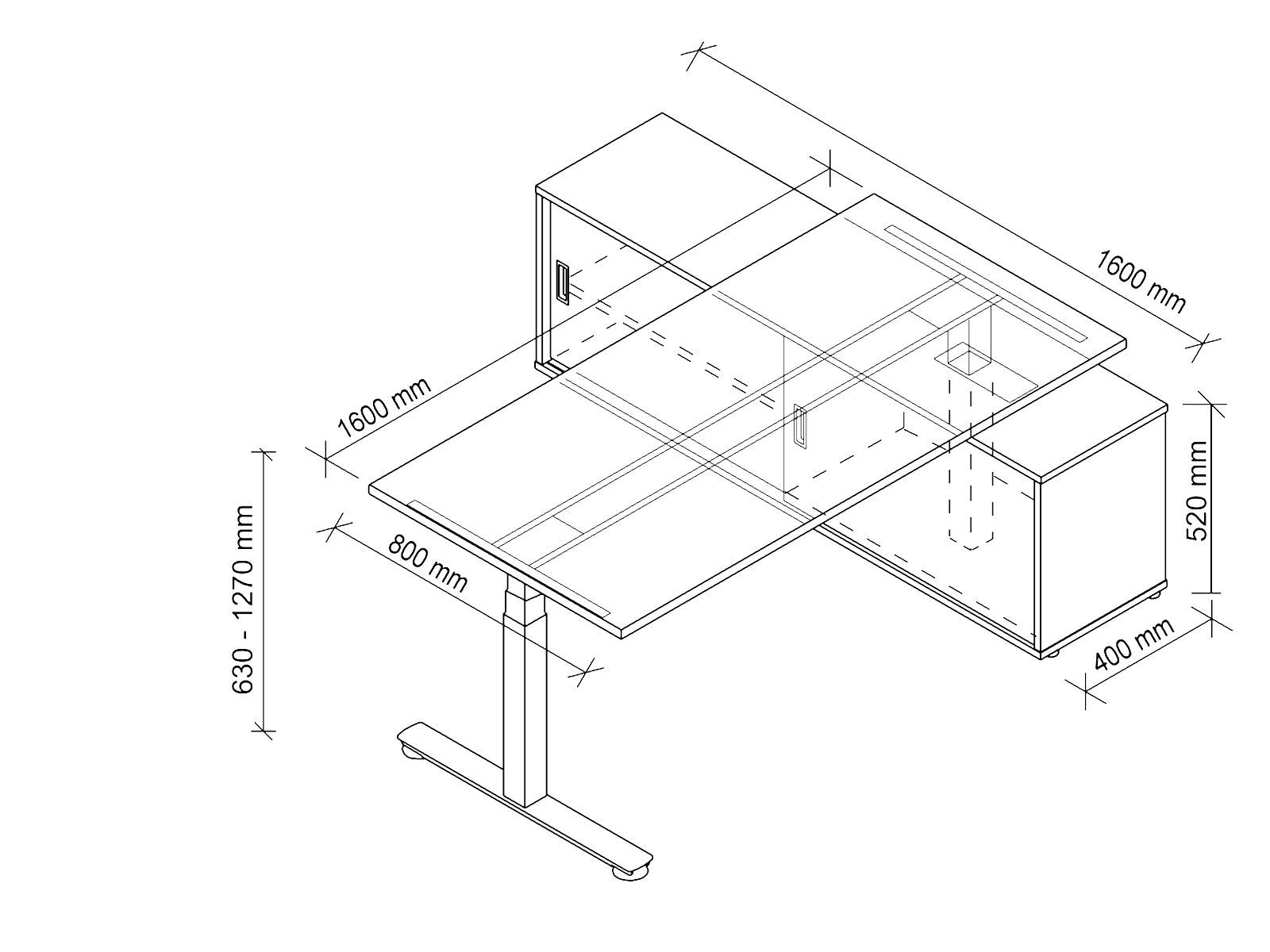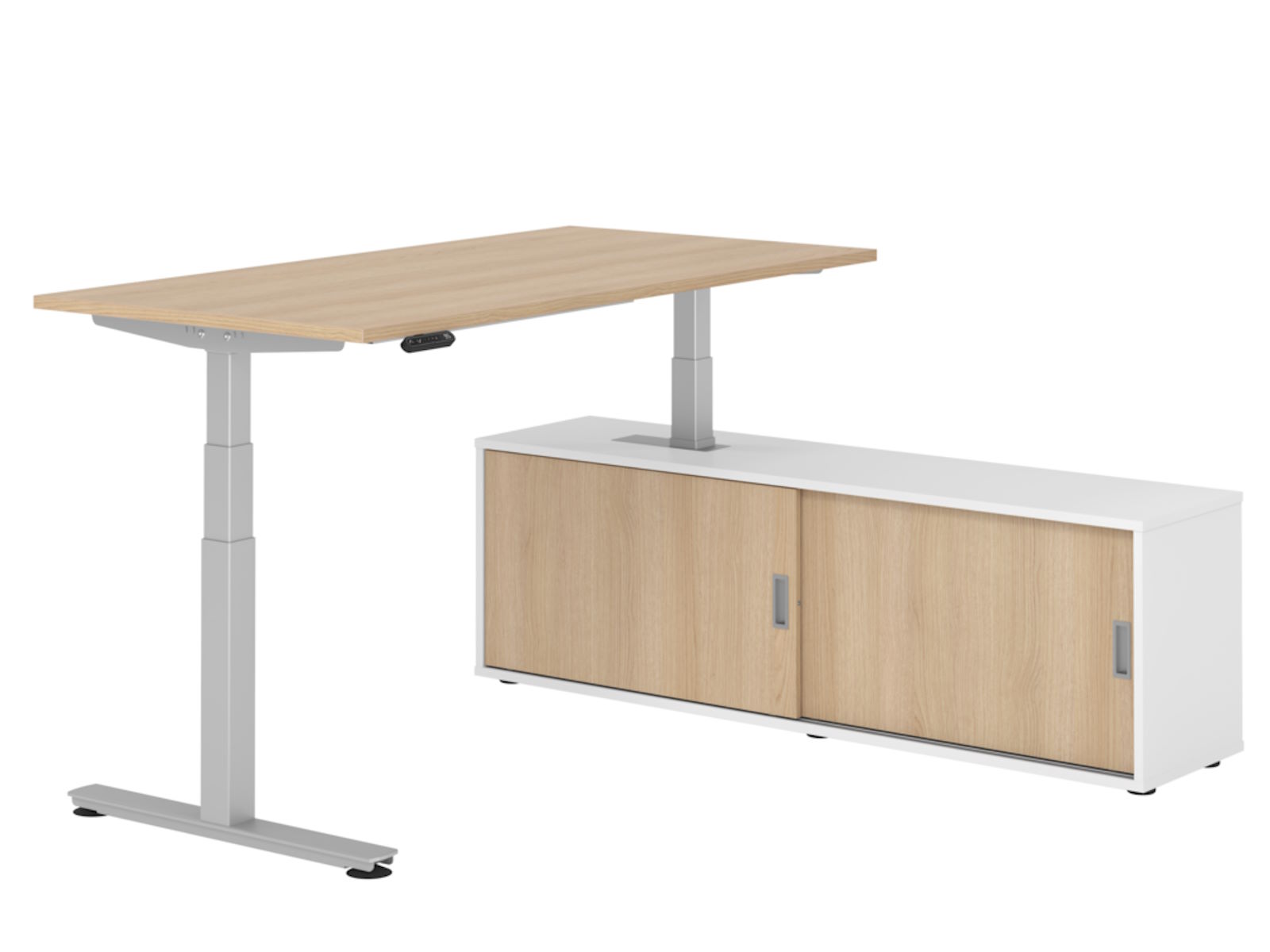 höhenverstellbarer Schreibtisch mit Sideboard