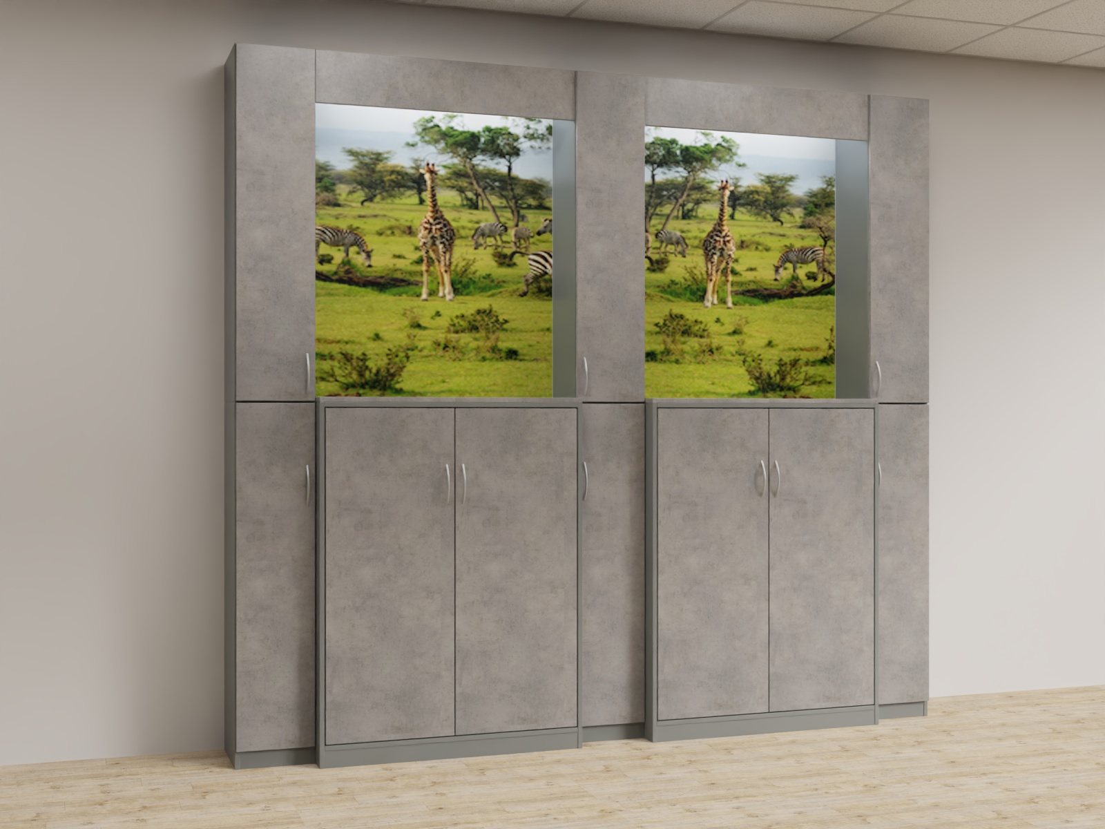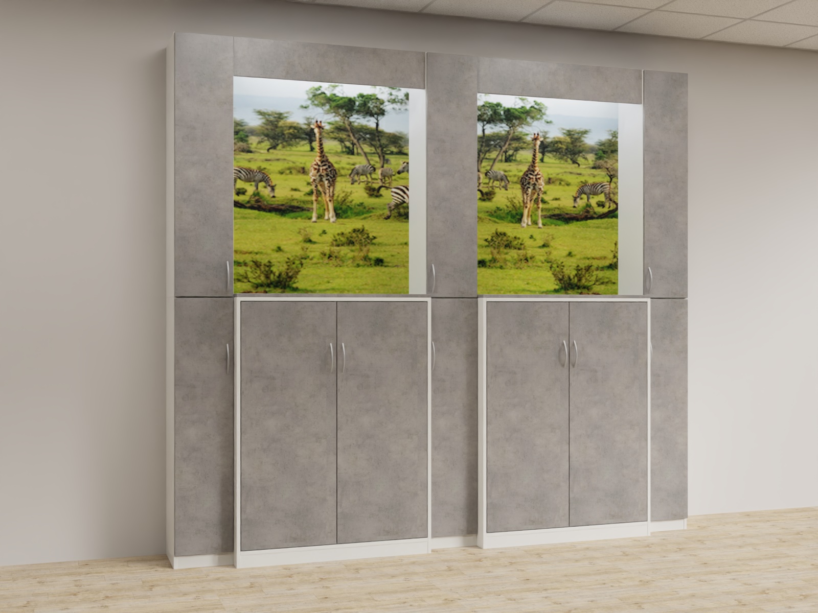 Variante 05 3x Funktionsäule,2x u4d_1364 Aktenschrank, Bildrückwände, Lichtwinkel